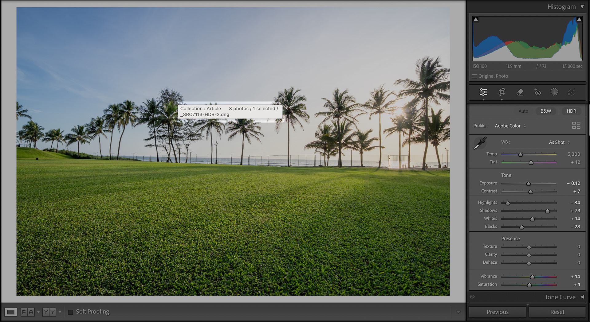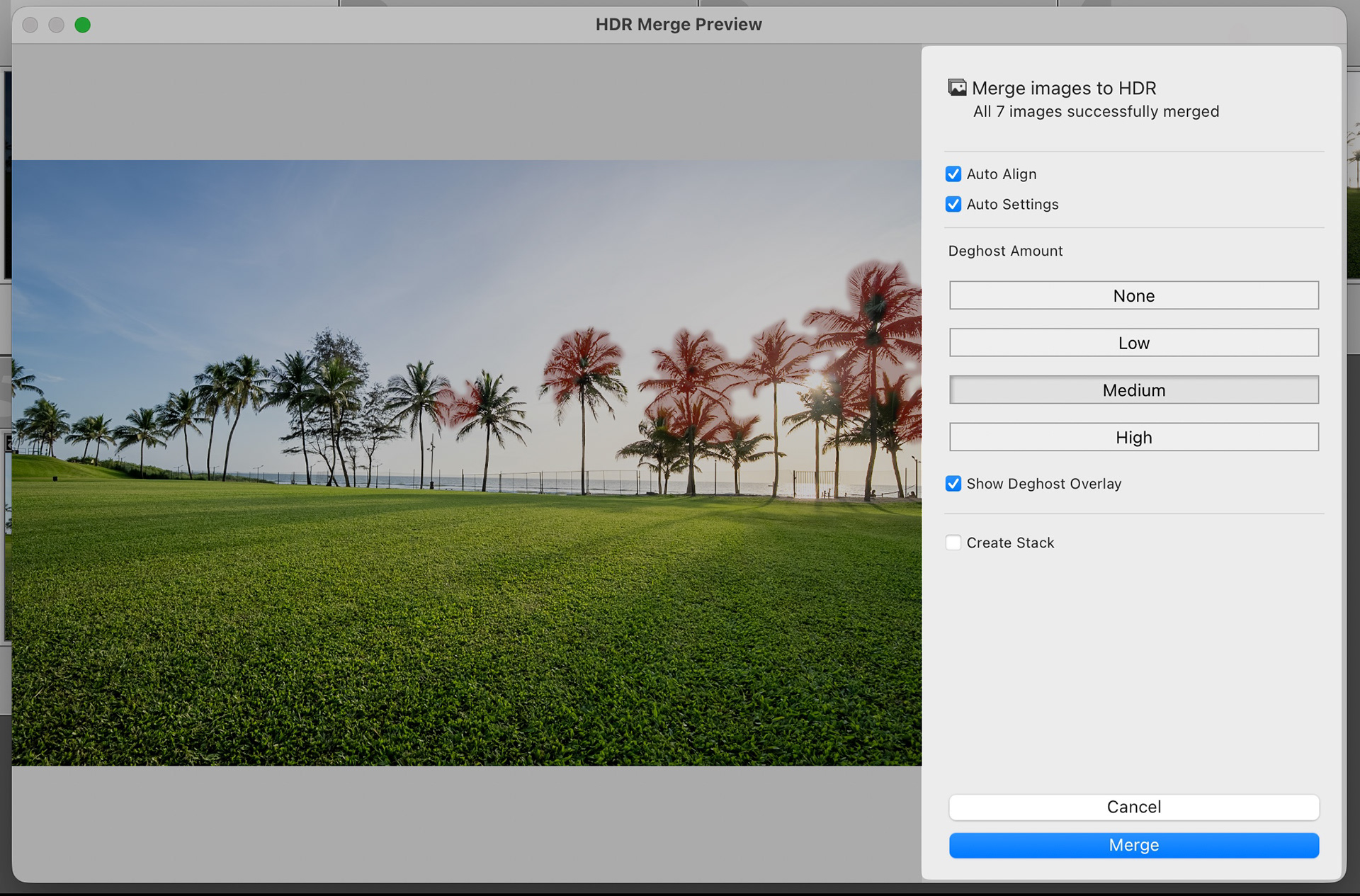 Lightroom will then generate a preview of the merged image