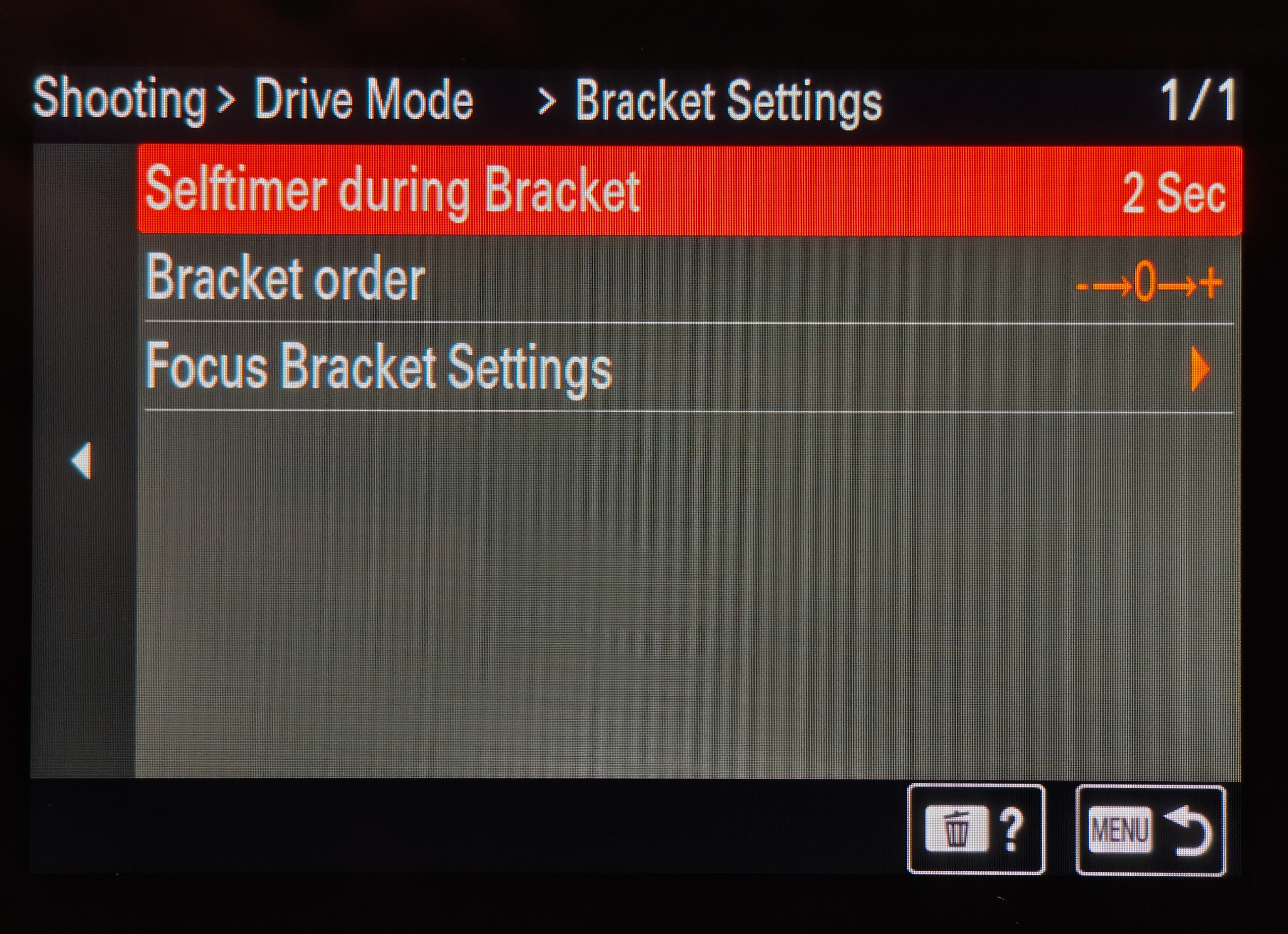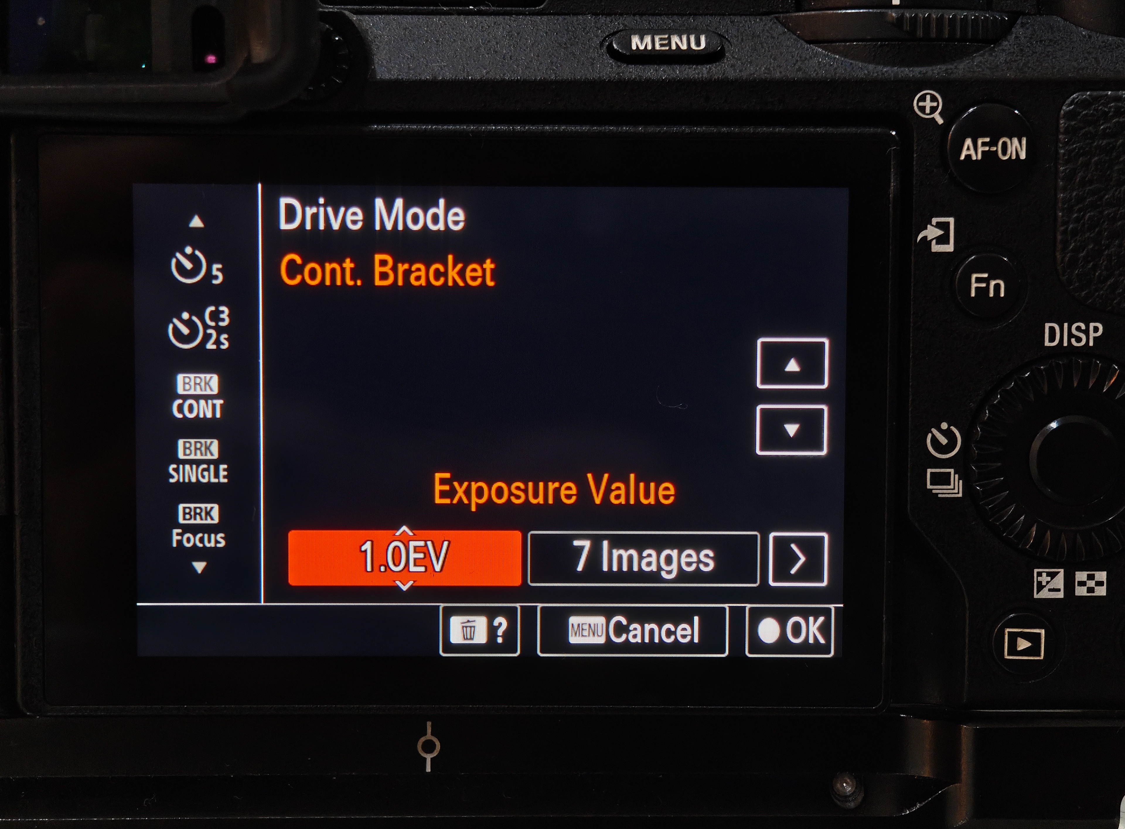 The first step of Exposure Bracketing is to compose your scene and take a few test shots to establish the composition and then lock it off on your tripod. After which you should lock your focus by using a small focus point or manually focussing to a point where most of the desired scene is in focus. Now set your camera’s Drive Mode to Continuous Bracket and set the timer to 2 or 5 seconds to avoid shake. (The following steps are Sony specific so please adapt them to your respective camera system). You will find the Timer settings by pressing the right move button on the camera which would open the bracket settings. Here I recommend you to have the settings as shown below in the images. Once the camera is configured, press the shutter button and wait till the bracketing sequence is complete (which only takes a few seconds).
